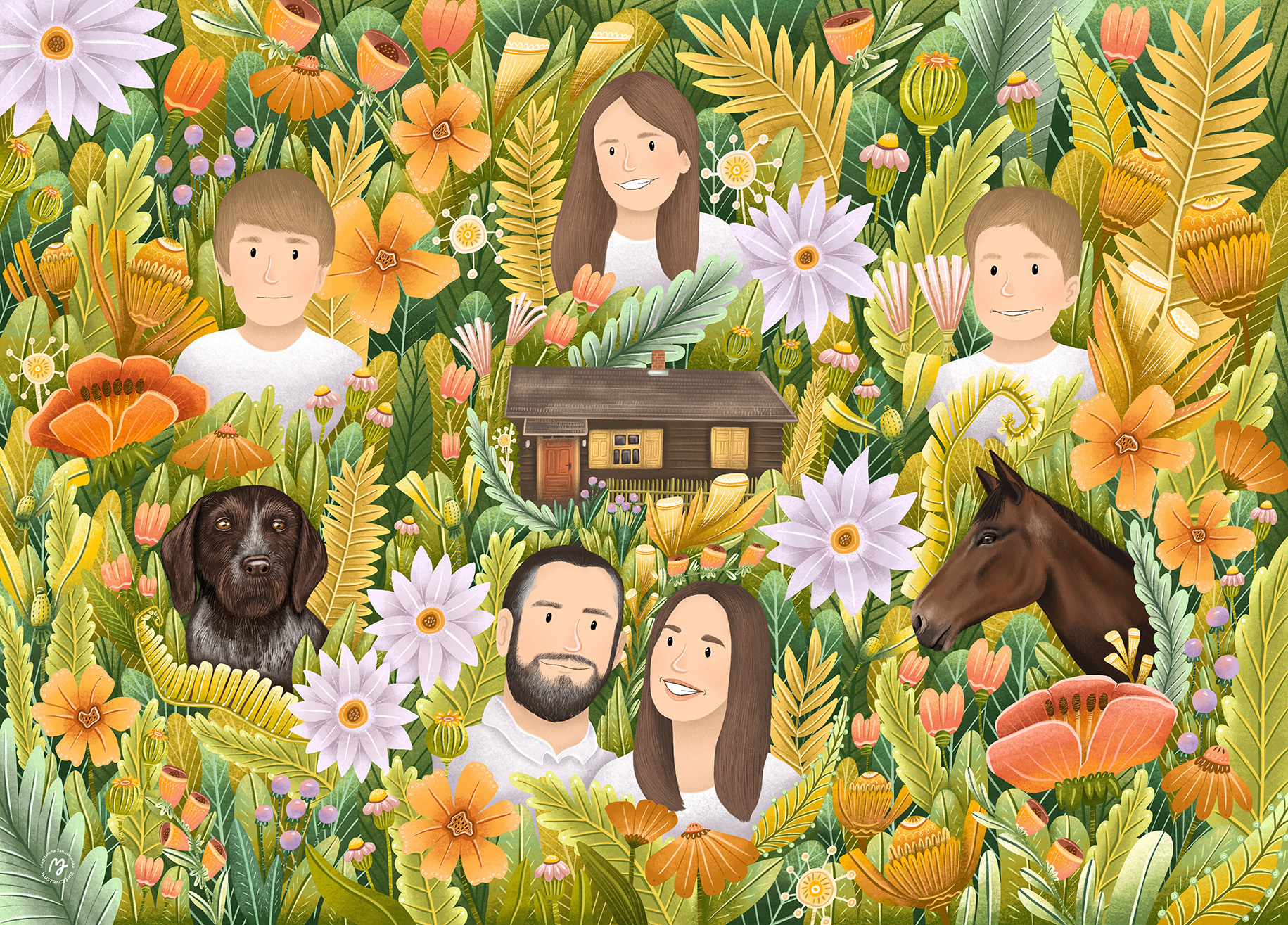 Tworzę portrety, które uchwycą charakter Twojego zwierzaka i pokażą go w wyjątkowy sposób wśród ulubionych motywów, w towarzystwie właściciela lub jako głównego bohatera ilustracji.